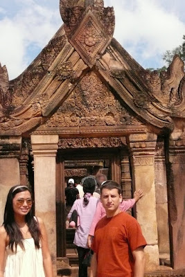 Siem Reap is a city north of Phnom Penh, and in Khmer language, it means Thailand conquered...this was a bazzillion years ago though. Siem Reap is no longer Thai territory. After the French came to Cambodia, Thailand had to let go of its conquered lands. In any case, Siem Reap is COVERED with temples...including ANGKOR WAT, which was just recently on the ballot for one of the new seven wonders of the world. Voting ends today (7-7-07) for the new wonders of the world and although I cheated and voted twice, Angkor Wat wasn't even close to being a finalist.