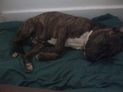 stolen from said home to live in another home where there were children. he, being a playful puppy, knocked these kids down while playing, thus leaving him to be chained up outdoors during a 5 day rain storm. sniff sniff.