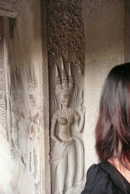 the temple is covered with apsara dancers who are these mythical female dancers that were born of the bubbles.