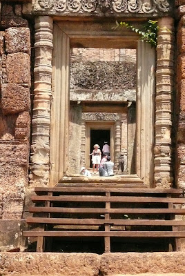 Siem Reap is a city north of Phnom Penh, and in Khmer language, it means Thailand conquered...this was a bazzillion years ago though. Siem Reap is no longer Thai territory. After the French came to Cambodia, Thailand had to let go of its conquered lands. In any case, Siem Reap is COVERED with temples...including ANGKOR WAT, which was just recently on the ballot for one of the new seven wonders of the world. Voting ends today (7-7-07) for the new wonders of the world and although I cheated and voted twice, Angkor Wat wasn't even close to being a finalist.