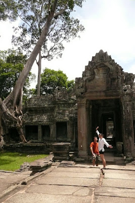 Jayavarman VII (the guy who built Angkor Wat) built this temple for his mother...the most amazing thing about this temple is that unlike the other temples in Angkor Ta Prohm was not cleaned and restored. There is actually a small debate going on because the GIANT TREES and GIANT ROOTS have taken over the entire temple and are both supporting and destroying the temple. People think that in ten years, Ta Prohm will be completely destroyed. =(